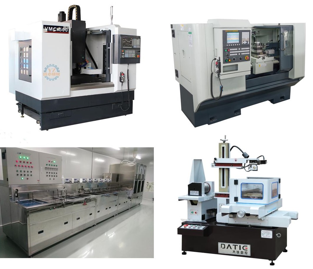 我们公司采用数控车,加工中心,线切割,超声波清洗机等精密加工设备